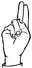 На ћирилици написано АЛЕН ГРАБОВЧИЋ састоји се из 13 слова [?]. Исписано ћириличном једноручном азбуком за глувонеме: